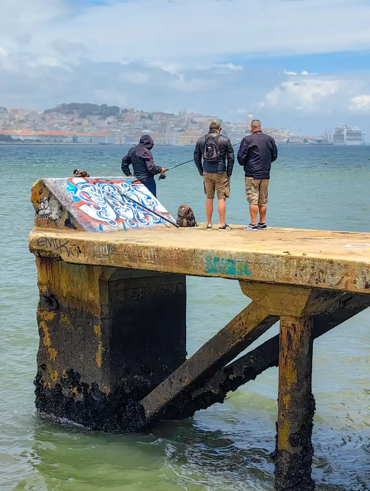 Káva. Rybári. Ticho. Všetko pôsobí obyčajne. A potom si všimnem, že väčšina ľudí sa pozerá smerom k vode. Nie na Lisabon. Na druhú stranu. Ako keby vedeli niečo, čo ja ešte len zistím.