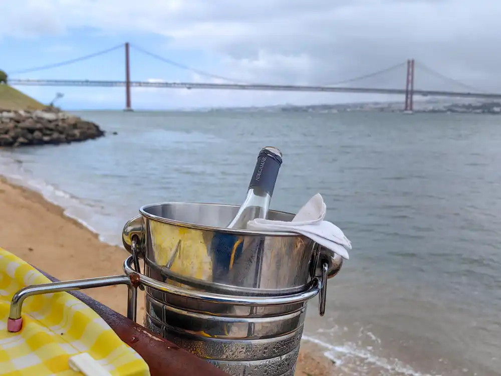 Čašník nás usádza za stôl na móle. 30 cm vedľa nás čľupká potichu Tejo. Opät nám praje. Aj vietor ustal. Sadneme si. Víno. Excelentný steak. Výhľad.