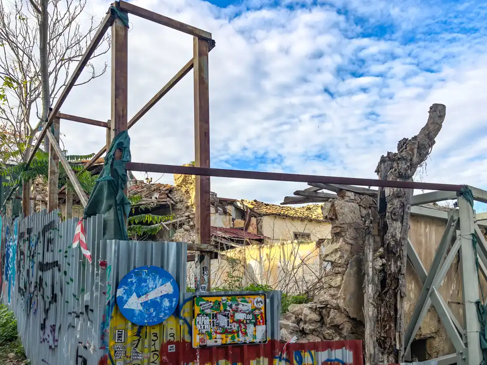 Uličky sa krútia bez logiky. Jedna končí múrom. Druhá schodmi k dverám bez kľučky. Tretia je taká úzka, že sa musím otočiť bokom. Steny sú posiate graffiti.
