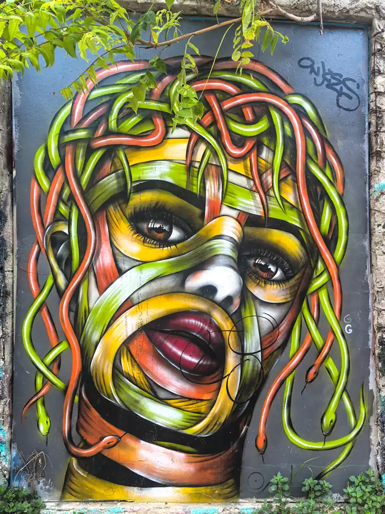 Nie je to umenie pre turistov. Žiadne antické stĺpy ani modré okenice. Sú to vnútorné dialógy miesta. Tvár bez očí. Oči bez tváre. Medúza. Street art tu charakterizuje genius loci miesta lepšie než akýkoľvek sprievodca. Je to revolučný výkrik prostredia. Akoby mi Anafiotika šepkala to, čo mi oficiálne Atény zatajujú.