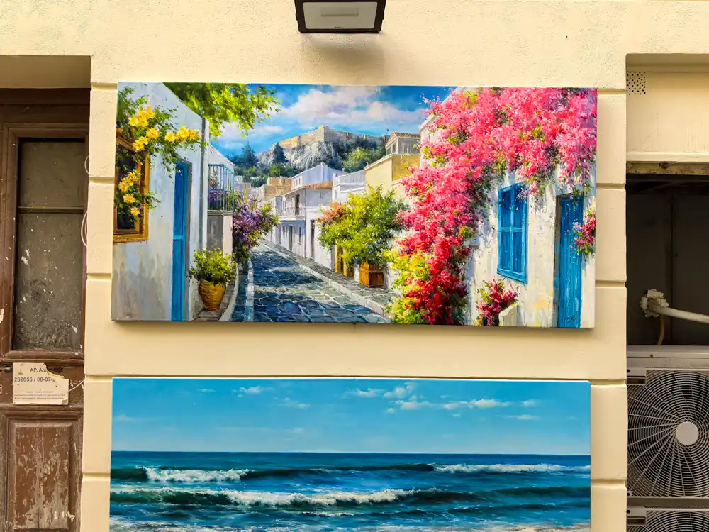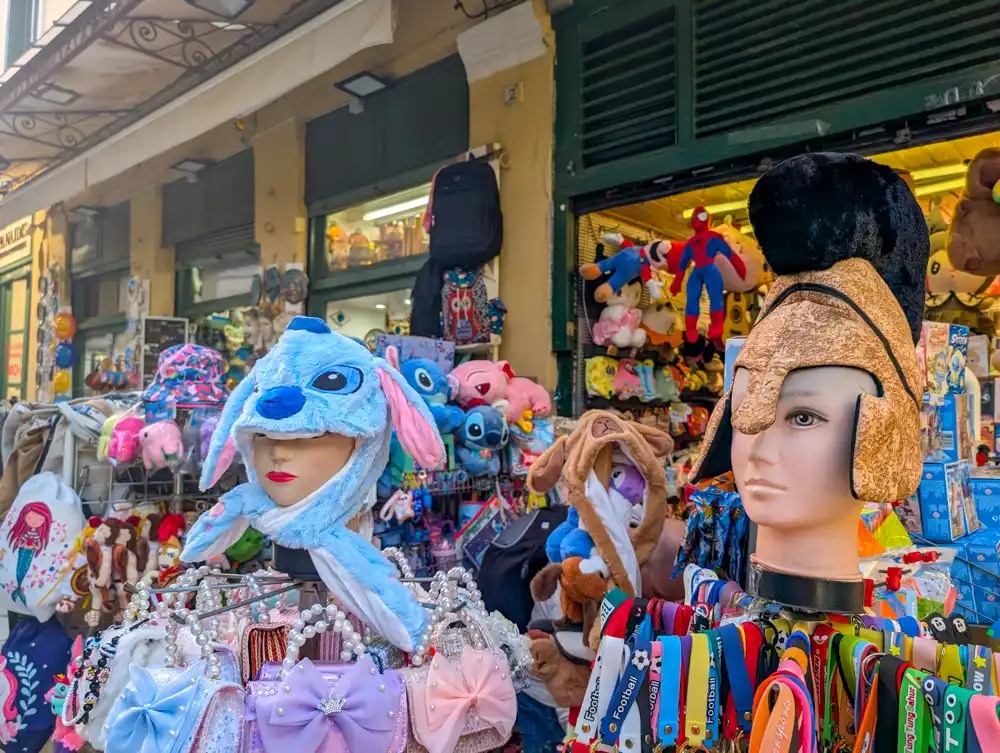 Reštaurácie s identickým menu, rovnaké magnetky, čínske hrnčeky a uteráky I ❤️ Athens, ten istý usmievavý Zeus vytlačený na tričku veľkosti XXL. Plaka je síce historická ale pôsobí ako vývar, ktorý sa varil príliš dlho. Zostala len slaná para. Turisti ju dýchajú a nahovárajú si, že cítia históriu. Ja som cítil len predražené oregano.