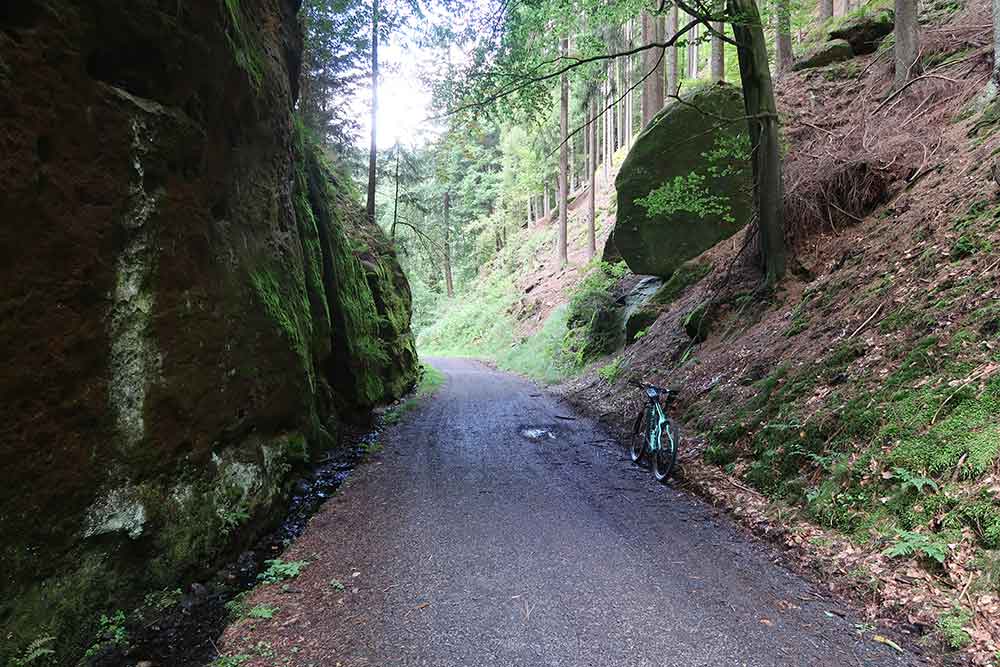 Čaká nás na jeden z najkrajších turistických výšľapov na Rudolfuv kámen a vyhlídky okolo Jetřichovic. Moc som na bajku nedal, ani rýchlo. Hlavným dôvodom bol fotoaparát. Fotíš každých 300 metrov. To sa fakt nedá.