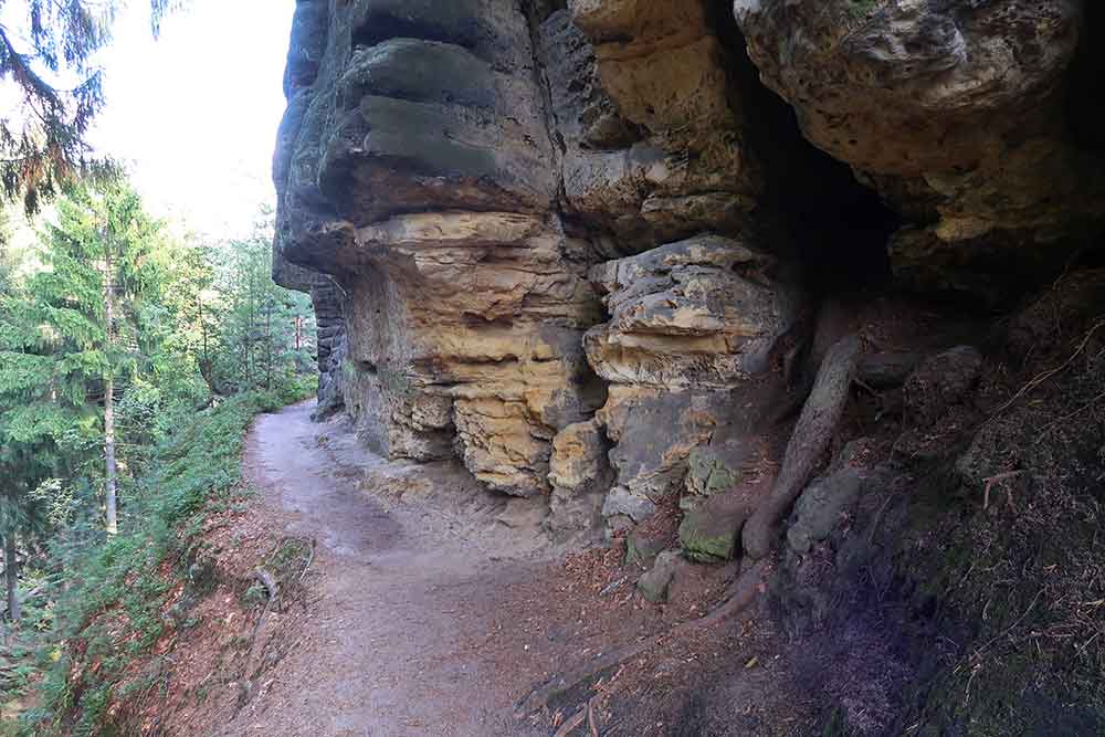 V zime? Zabudnite. Snehu po krk, pluží sa len výnimočne a často sa aj týždeň nedostanete dole. Zimná sezóna v NP České Švajčiarsko kvôli vysokému stupňu ochrany prakticky nefunguje. Žiadne bežkovanie, žiadne lyžovanie v srdci hôr. Slovansky sa bratáme a uisťujeme ako sa máme navzájom radi a pokračujem na Jetřichovice. Tie sú aj vďaka osadlostiam tak rozsiahle, že ich môžte považovať za stred parku. Postupujem po asfaltke na Koniec sveta a Rynartice a tu ma čakajú prvé výškové vychutnávky. Tabuľa s označením 15% neklamala. Ako vravím. Krátke zato jedovité. Dorážam do Doubíc v pokľudnom tempe. Šetrím sa na poobedie.