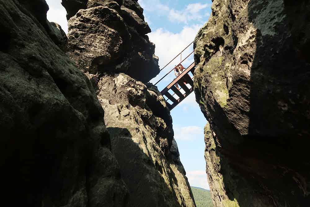 Až po Rudolfúv Kámen. To čo prišlo potom, ma definitívne dostalo pre turistiku. Jeden z najkrajších trekov aké môžete zažiť v českých horách. Bolo tu všetko, schody, skoky, reťaze, zábradlia, 300 metrové diery pod nohami, vyhliadky,, proste skvelé. Ak budete v Českom Švajčiarsku, tento trek si rozhodne nedajte ujsť.