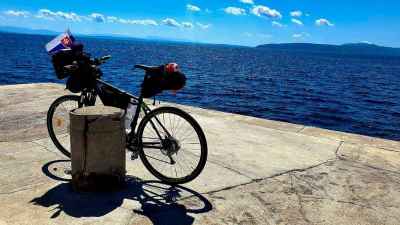 Vydávam sa teda smerom Opatija, Lovran a Medveja, a túto trasu teda vôbec neľutujem. Krásne miesta, presúvam sa chodníkom priamo pri mori, dokonca po pláži medzi opaľujúcimi turistami, aby som nakoniec zistil, že tam cyklisti majú zákaz. Našťastie to nikomu nevadí, nakupujem posledné suveníry, a po 4 hodinách sa vraciam do kempu za Jarom.