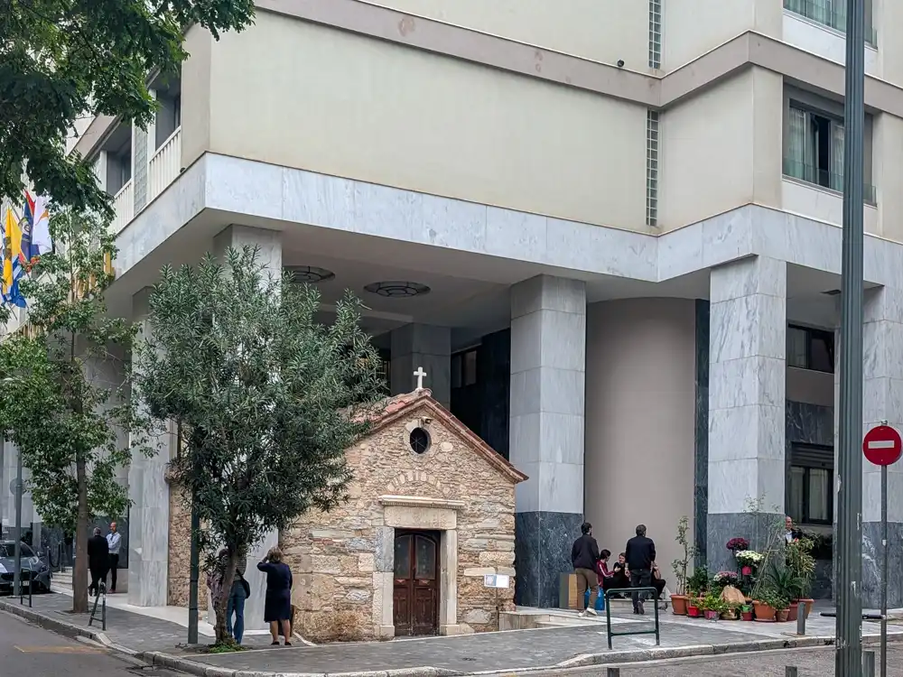 Mojím cieľom bol jeden z najkurióznejších chrámov Atén, učupený priamo pod luxusným hotelom Electra Metropolis. Doslova pod ním.