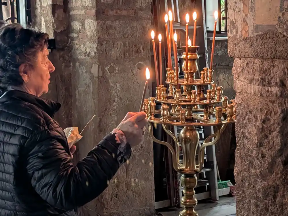 Tieto malé kostolíky sú duchovné nabíjačky. Aténčan do nich nevbehne na hodinovú liturgiu, ale na tridsať sekúnd. Zapáli sviečku, pobozká ikonu a vráti sa späť do vravy Monastiraki. Je to výmena energie. Sviečka za pokoj v duši, kým sa znova vrhne do boja o parkovacie miesto.