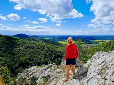 Žltá šípka nás poslala doľava a po skalách sme vybehli už priamo na Čiernu skalu. Po pár metroch sme sa dostali k prvým fascinujúcim výhľadom . Vyšli sme ešte pár metrov a boli sme na vrchole Čiernej skaly (662 m. n. m.). Výhľad, ktorý sa ponúka z tohto miesta, je naozaj nezabudnuteľný (na rozdiel od Zárub, kde aktuálne výhľady nie sú k dispozícii).