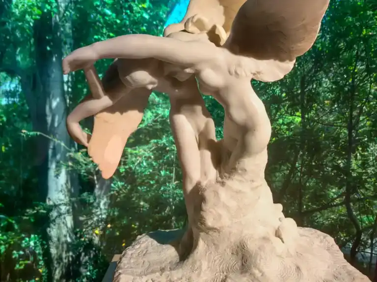 Svetlo prichádza cez obrovské presklené steny. Zrazu nepozeráš len na obrazy – pozeráš cez ne. Do záhrady, do zelene, do vody. Pozadím diel je záhrada samotná. Všetko tu má svoj zmysel. Umenie a príroda sa tu nehádajú. Koexistujú.