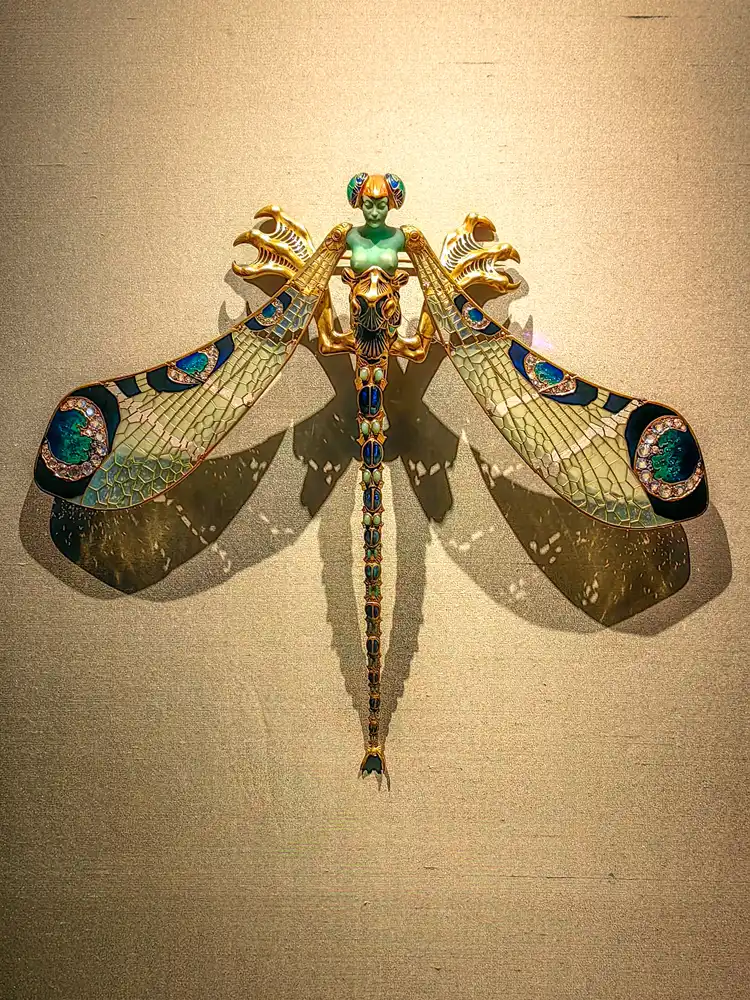Jedným z vrcholov je René Lalique a jeho secesný svet. Šperky, ktoré vyzerajú ako z inej planéty. Vážky, hmyz, organické tvary.
