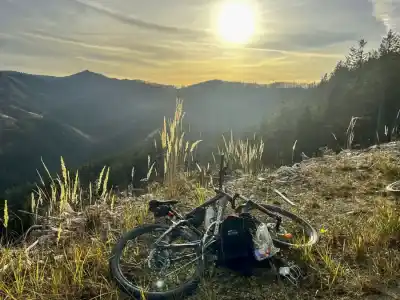 Tu sa cesty rozdeľujú. Pokračujeme, sedlo Maríková už nie je ďaleko. Kúsok od Maríkovej je sedlo Majbíková. Prechádzame na martinskú časť pohoria, dáme krátku pauzu na svačinku a ďalej peknou zvážnicou obídeme Bludnú horu, a aj Hnilickú Kýčeru. Deň sa už príliš kráti, slnko už za chvíľu zapadá a preto príde nápad na skratku, vytlačiť bajky do sedla pod Hnilickou Kýčerou.