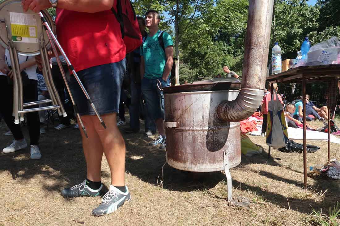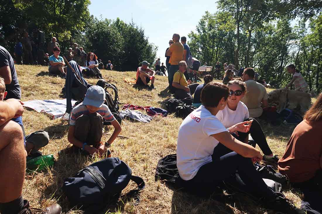Tríbeč nieje veľmi vysoký, ale dlhýýýýý. Turistický výstup ťa preverí. Po svojich, na bajku, niektorí aj koňmo. Mladina, starina, už od rána sa na kopci varí guláš. Okolo 11,00 sa začína priestranstvo okolo vrcholovej značky zapĺňať. Od Zlatna, Čierneho hradu, zo Solčian, Oponíc, Kovariec, Ľudia prichádzajú zo všetkých smerov. Počasie sme si vyjednali na jedničku.