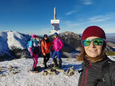 Výhľady boli neobyčajné a dych vyrážajúce. Obdivovali sme blízke zasnežené štíty Západných Tatier, ornacký hrebeň, dokonca aj vzdialenú Babiu horu a Pilsko. V diaľke nás očarili snehom pokryté vrcholky Vysokých Tatier. Po zaslúženom oddychu a pár záberoch sme sa vydali na cestu späť tou istou trasou, akou sme prišli.