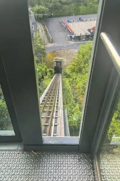 Prvýkrát si uvedomujeme, že cesta na kolobežke hore bude na tých klzkých kameňoch možno príjemnejšia a bezpečnejšia ako zjazd. Našťastie na hornom námestí pri hrade objavujeme výťah, ktorý nás bezpečne zvezie až na parkovisko pri rieku Labe.