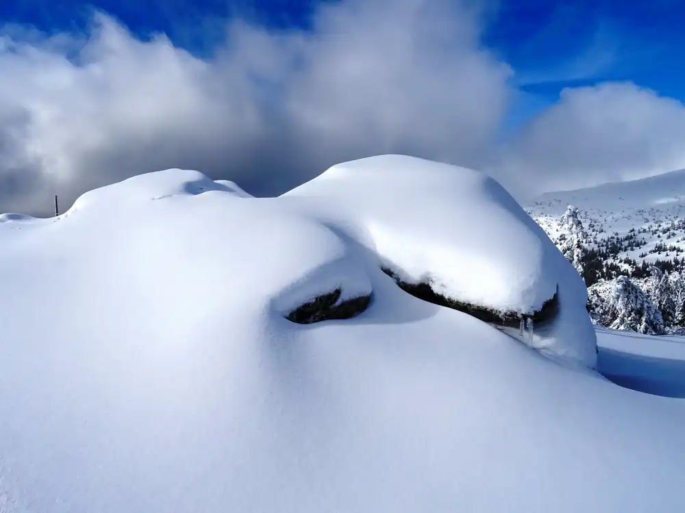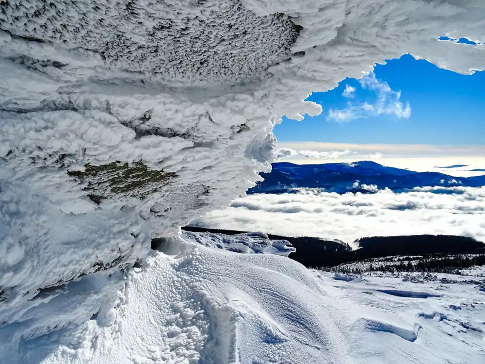 Pod vrcholom sa hmly miešajú s azúrovou oblohou. Začínajú sa valcovať zo Šumiaca. Vysielač sa vynára a zase mizne. Omrznuté kosodreviny, skaly a tajomné svetlo hmlou sa menia na niečo takmer nadrealistické. Každý krok hore je ako postupovať do obrazu, do krajiny, ktorá sa mení každú minútu. A práve to robí Kráľovu hoľu takou výnimočnou – náročnosť stúpa, no odmena je každý výhľad, každý záber do fotoaparátu.