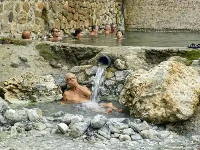 Voľne prístupné prírodné bazény s dokonale teplučkou termálnou vodou boli balzamom na moje utrpenie. Čo budem hovoriť. Dve hodiny rochnenia a absolútneho kľudu ma dostali do stavu nirvány. Ešte viac, než ľubozvučný dialekt miestnych Kalábrijcov, ktorí snáď okrem bahnenia nemali nič iné na práci. Od tohto dňa som bol v tých bazénoch denne a považujem ich za najväčší highlight celej oblasti. Miestnym ostáva len ticho závidieť. Močiť sa tu každý deň a potom zomrieť. Ani ten cintorín nemajú ďaleko.