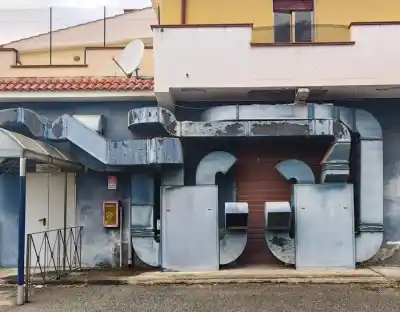 Cyklojazda dole kopcom však nebola úplne plynulá. Jednak nevieš, či dole alebo v zákrute zabrzdíš, jednak ti okolie pripravuje vizuálne bonbóniky. Ak máš pri bicyklovaní oči otvorené, vždy objavíš čosi mimoriadne. Pre mňa to tentokrát bola vzduchotechnika olivovej lisovne. Jej mimoriadnej estetike som neodolal. Verte, nebolo jednoduché miestnemu vartášovi vysvetliť prečo to fotím a ako veľmi sa mi tie geometrické tvary páčia.