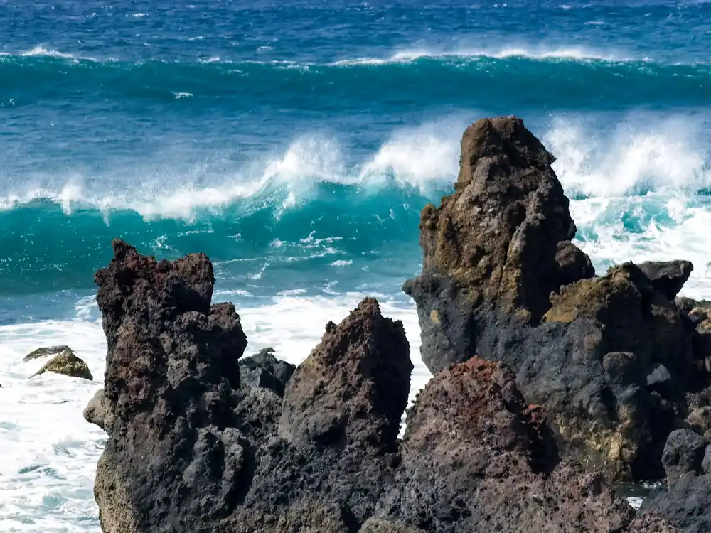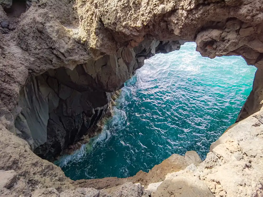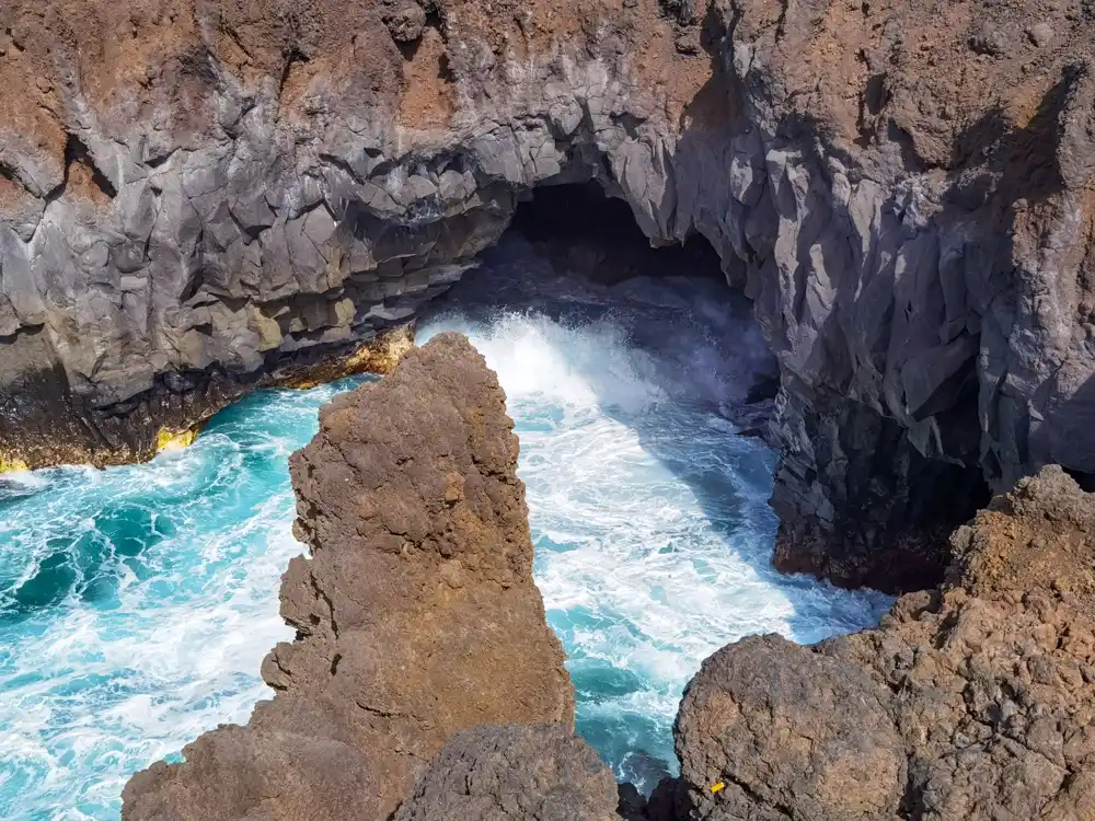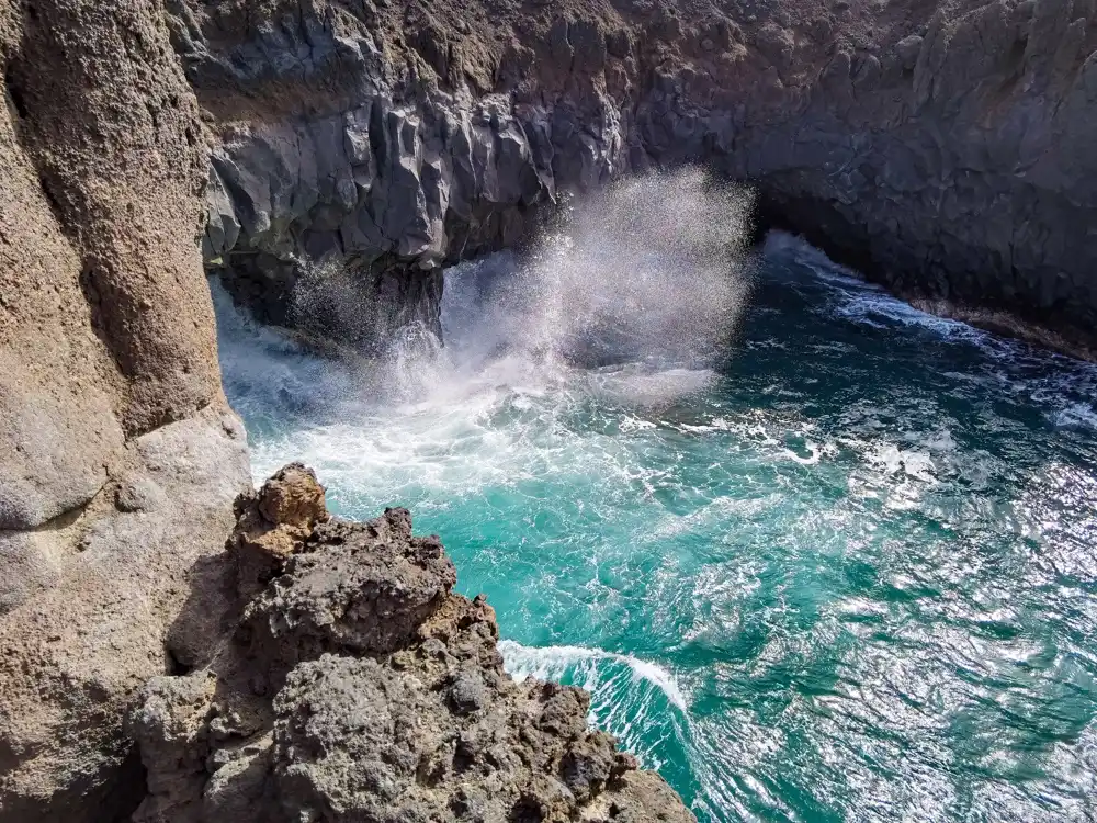 Útesy sú popretkávané podvodnými jaskyňami, ktoré vznikli, keď láva z erupcií Timanfaye v 18. storočí stuhla rýchlejšie, než stihla dopovedať poslednú vetu. More si do nich odvtedy razí cestu s takou silou, že medzi kameňmi doslova vrie.