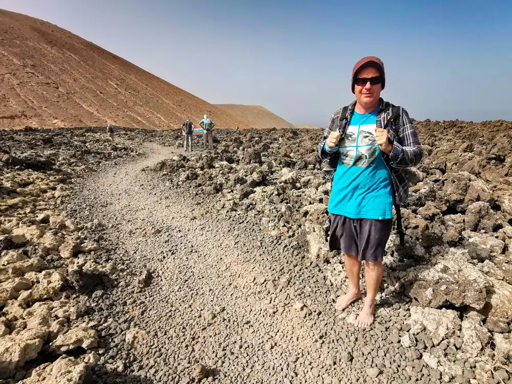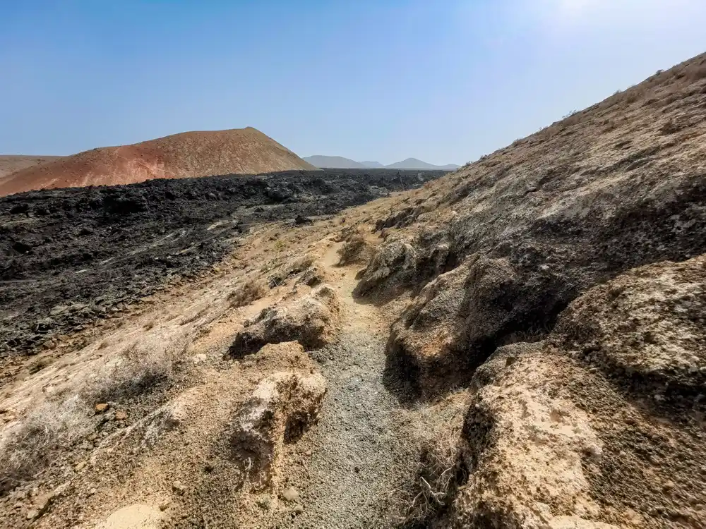 Oficiálnych hike trailov po sopečnej krajine Lanzarote veľa nenájdete. Národný park Timanfaya je skôr autobusová atrakcia, kam je vstup ľudskej nohy zakázaný. O to viac poteší, že práve časť parku okolo Caldera Blanca má výnimku a môžte si dať 12 km okruh okolo 3 sopiek v lávových poliach úplne sami. Na ten počet turistov, aký je na Lanzarote tu bolo relatívne prázdno.