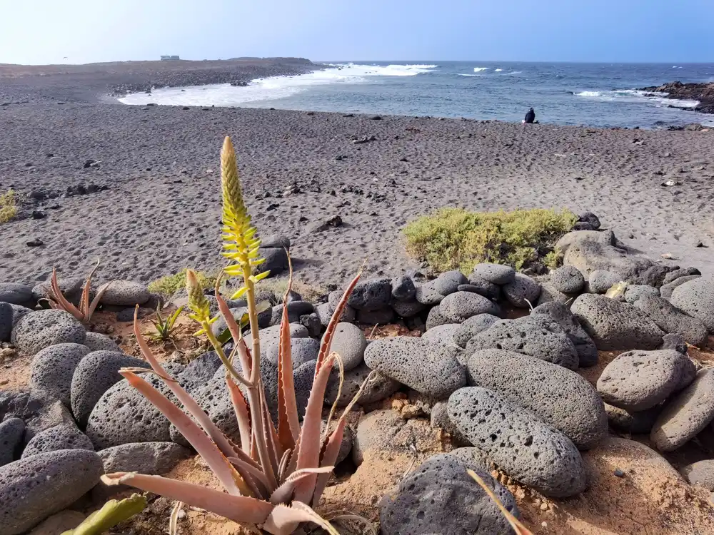 Voda je tu pokojná, priezračná a teplejšia než inde na pobreží. Ak máš pľuzgiere po turistikách, tu sa „vymočia“ tak luxusne, že by im to závidel aj kdejaký wellness manager. A potom príde kontrast, ktorý Lanzarote tak miluje.