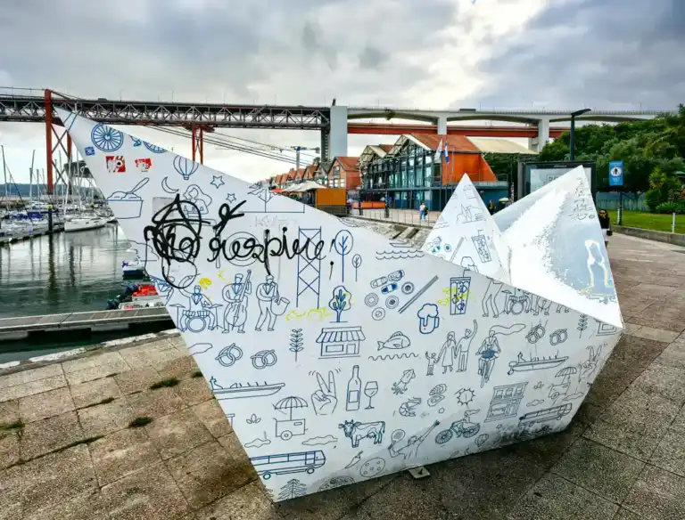 Prvých pár kilometrov pozdĺž nábrežia je Lisabon ešte sám sebou. Nie ten z pohľadníc, ale ten z rána po noci – trochu opitý, trochu unavený, ale úprimný. Prístavné móla sa striedajú s pubmi, kde v túto hodinu sedia ľudia s espressom a noviny čítajú s výrazom, akoby správy ešte nestihli byť zlé. Hoci nieje najteplejšie, s pribúdajúcim večerom narastá aj ruch, čulá prístavná komunikácia a hostia.