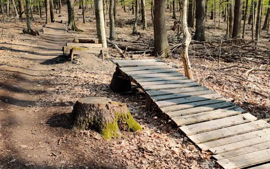 Na traily sa nachádzajú klopenky, rôzne skoky malé aj väčšie, vlnky, preskoky s dierou uprostred, skoky na rovine s tvrdým dopadom 😊 a dve rozvetvenia, ktoré sa však po pár metroch opäť zase spájajú.