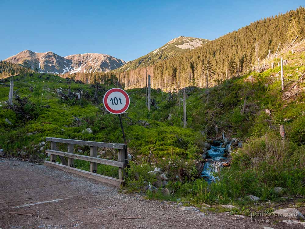 Vyšiel som z tieňa a všetko je zaliate slnkom, na oblohe ani mráčik. Ranné slnko je však ešte slabé. Sem-tam míňam osamelé stromy. Zvláštne, že sa udržali, keď všetky široko-ďaleko popadali. Cítim sa ako tie stromy. Prechádzam cez drevený most nosnosti 10 ton. Hoci nikde nevidno žiadneho človeka, stále badať stopy po zásahoch ťažkej techniky. Pripadám si ako vo filmoch po vyhynutí ľudí – všetko sa tu zastavilo, počuť iba spev vtáctva. Spoločnosť mi robí len Demänovka – nie tá vo fľaške, ba ani žiadna dvojnohá. 🙂 Stačiť mi musí tá šumiaca v koryte. Žijú tu v okolí vôbec pôvodní obyvatelia alebo sú tu len turisti a bohatí prisťahovalci, ktorí poskupovali všetky domy?