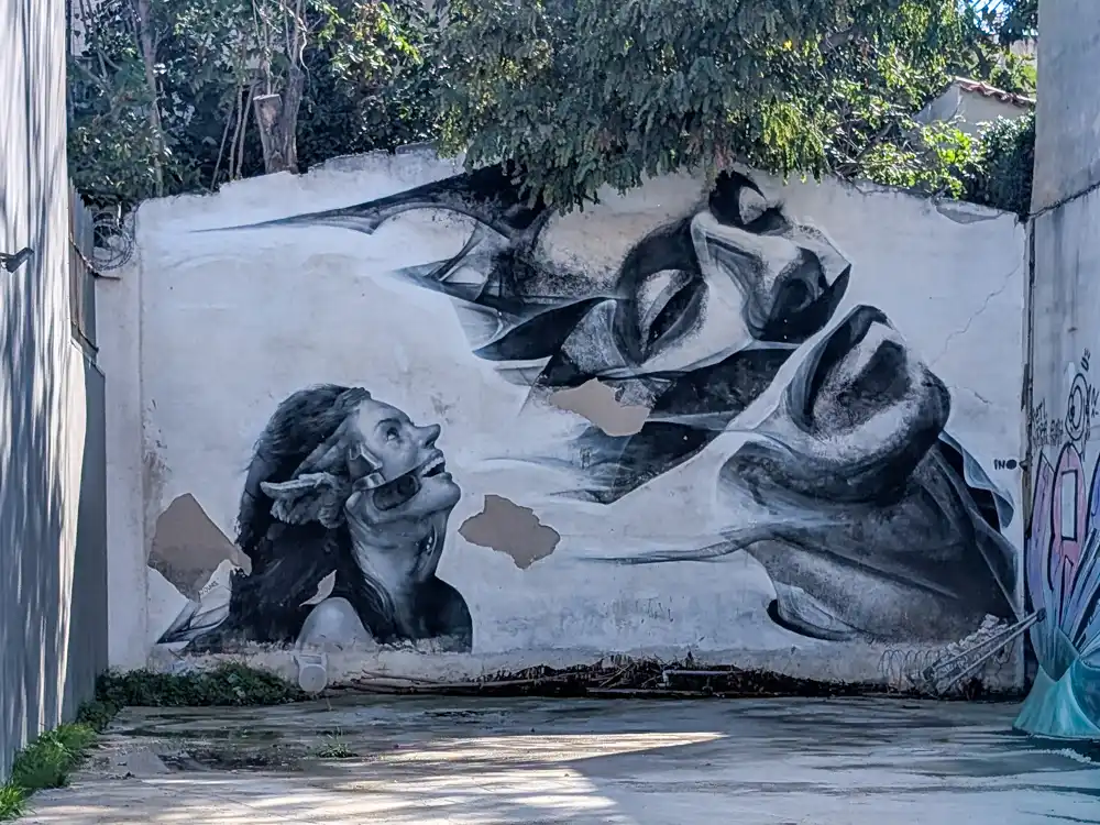 Je to presne ten typ štvrte, kde na jednej stene nájdeš politický mural, rozpadnutý plot, ultra fashion shop, abstraktné streetart dielo a o dva metre ďalej úplne všetko počmárané obyčajnými graffiti. Atény sú v tomto trochu anarchia – ale práve to im dáva charakter a punc európskeho centra centra streetart.