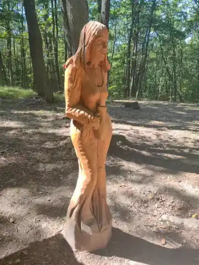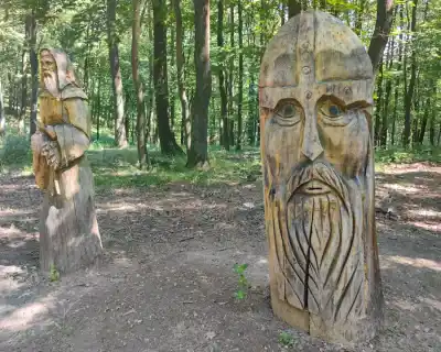 Hneď za rančom vchádzame do lesoparku na cyklotrasu k Mačacej skale. Kedysi to bol les ale dnes miestni hospodári z toho urobili skôr lesopark. Ostala jarabina a staré choré stromy. Cez les (alebo to, čo z neho ostalo) môžeš aj oblohu sledovať. Všetko zdravé drevo padlo za vlasť, podobne ako dva lesácke traktory. Možno sa už na ten mordor niekto nemohol dívať. Ale pri ďalšej jazde aj tie zmizli.