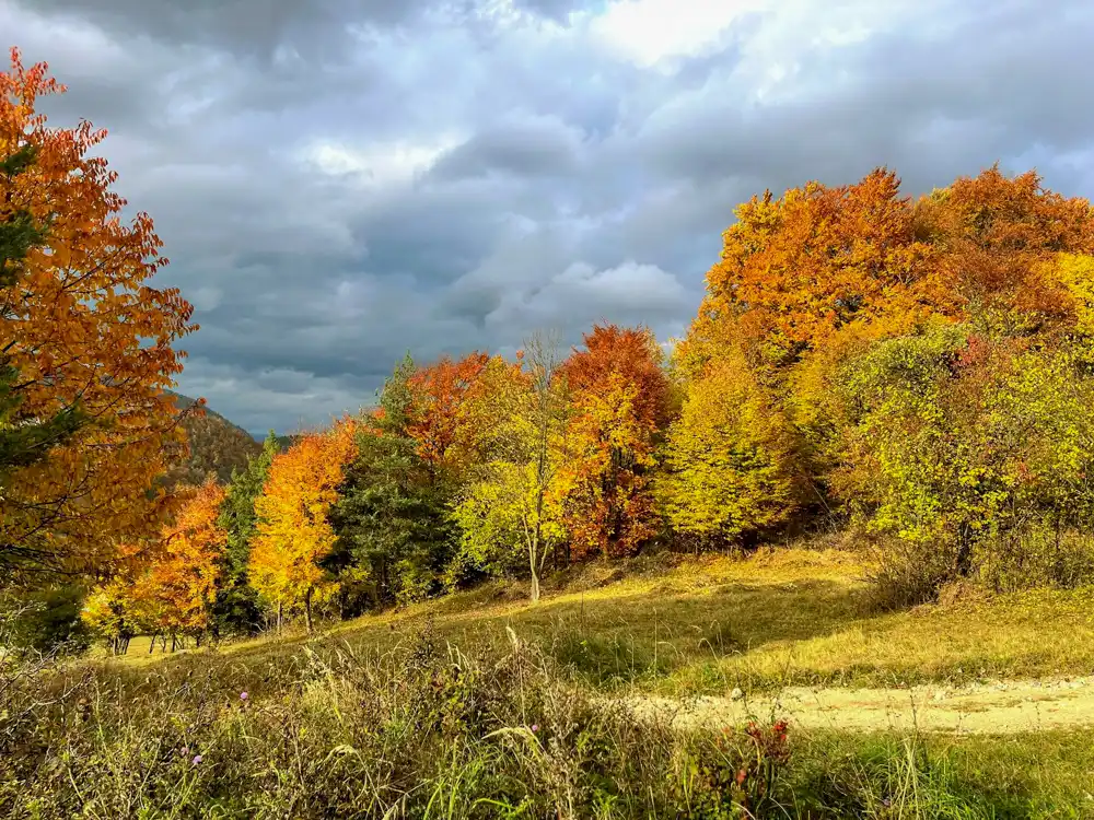 Les hrá všetkými farbami. Miestami je to až podozrivo dokonalé – ako keby niekto prepálil saturáciu. Keď zasvieti slnko, celé to pôsobí tak trochu neskutočne. Súľov je na jeseň najkrajší, hoci.. Niekde tu vraj chodí aj medveď.