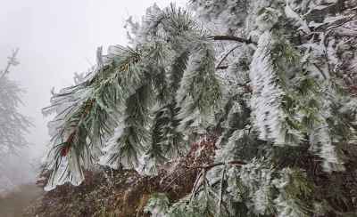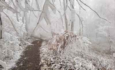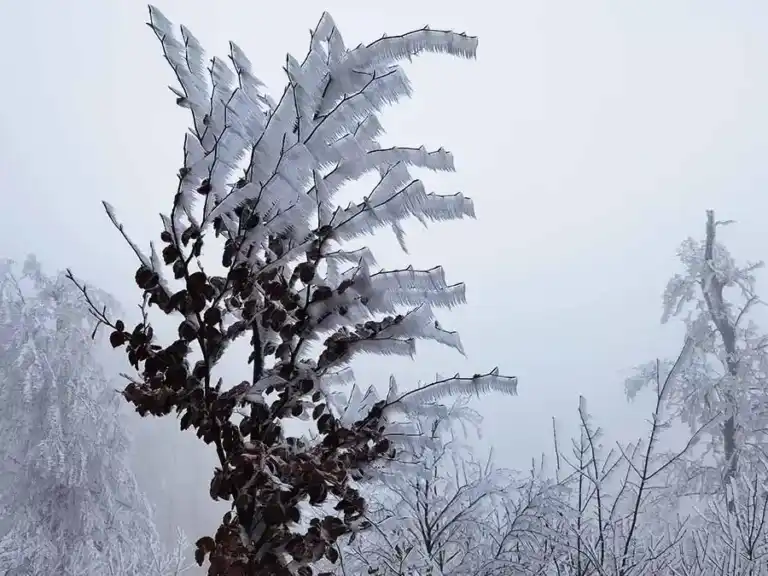 Ráno hmla, pološero. Typická jeseň. Ale stačí sa vyšplhať do sedla Marhát – a čaká vás divadlo. Ľad, vietor a inovať rozohrali na každej vetvičke fantastické obrazy.