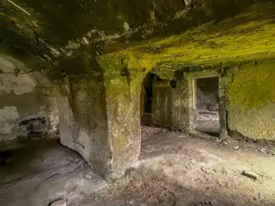 V staršom rozhovore v Pravde sme sa dočítali, že družstvo využívalo roky obydlie ako sklad jabĺk, vína a zemiakov. Nič proti tomu vínu. Sú to ohromné priestory a my obdivujeme fortieľnu kamenársku robotu, miestami doplnenú murovkou. Objavili sme aj komín. Toto vysekať do skaly nebolo jednoduché.