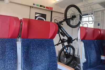Na trati Žilina – Trenčín premávajú jednopodlažné elektrické jednotky radu 661 so 7 stojanmi pre bicykle. Ojedinele tu zabehne aj väčšia verzia s 9 stojanmi. Doprava na trati Trenčianska Teplá – Horné Srnie je zabezpečená motorovou jednotkou 813+913 s troma stojanmi. Samozrejme pre bicykel je potrebné si tiež zakúpiť cestovný doklad. V prípade ak využijete rýchlik, je potrebná rezervácia.