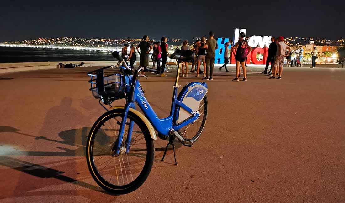 Koncept bez auta v meste som využil už niekoľko krát. Vo Frakfurte, Bingene nad Rýnom aj v Berlíne. Po prílete som bol pripravený nájsť prvý bicykel pešo, aj keby bol na druhej strane promenády. Ale prekvapili. Prvá dokovacia stanica je pri kruháči, priamo pred terminálom, 100 m od letištnej haly. Chvíľu som bádal, potom vytočil na mobile kód a za minútu už sedel na bajku. Išlo to až príliš rýchlo. Ani som si nestihol odčítať kedy som vyrazil. Batoh do košíka a vyrážam po Promenade des Anglais priamo do centra mesta.