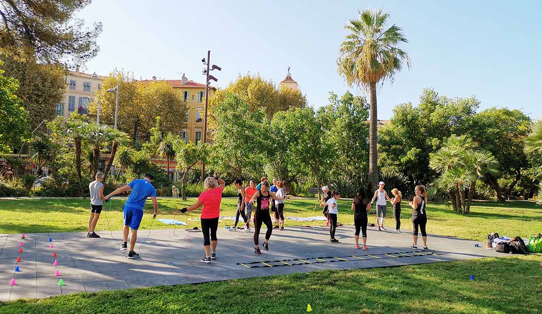 V záhradách Alberta 1 sa zhromaždí niekoľko tisíc ľudí. Ružové more. Z povzdialia ich sledujem. Veď oni začali spoločne cvičiť. Na pódiu hopsá predcvičiteľka, hudba je chytľavá a zisťujem že sa začínam pohupovať aj ja. To ešte z batohom na pleci. Prvýkrát si uvedomujem že niečo nieje v poriadku. Ešte mi to vtedy nedochádza. Sú uvoľnení, tešia sa, usmievajú. Majú dobrú náladu a iskru v očiach. Rád som sa zapojil do tejto nádhernej akcie. Do Nice som utiekol- lebo „reset“. Už som mal práce plné kecky a potreboval som si trochu prečistiť hlavu. A spoznať dôsledne miestny bikesharingový systém VeloBlue. Oprášiť tenisky a skoncovať s tým opuchom, čo mi vyrástol na bruchu.