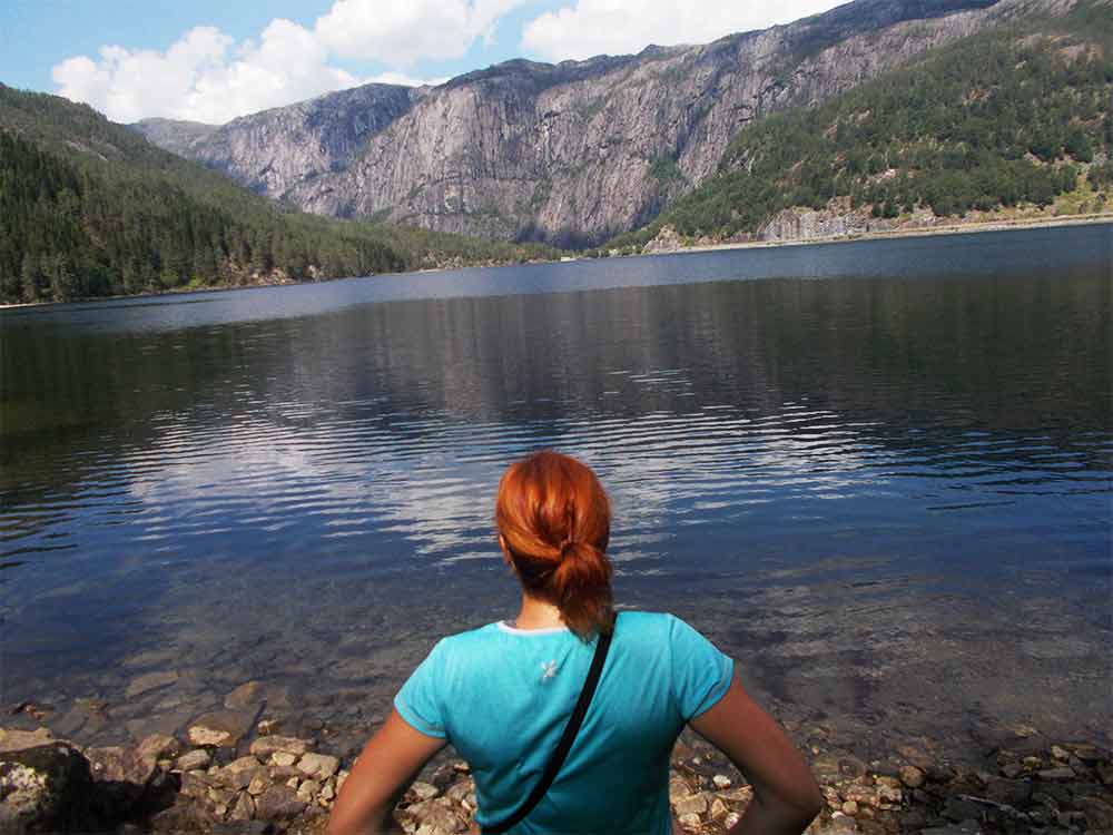 Opúšťame kemp pri Rullestadvatnet a vyrážame na výlet na pliesko Jettegrytene, ku ktorému sa ide po starej poštovej ceste, ktorá bola jedinou spojnicou tejto časti Nórska pred postavením tunelu Rullestadtunnelen. Pliesko je malebné, ako keby zabudnuté v kamennom údolí, je tu ticho, hladina je pokojná.