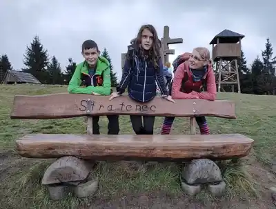 Po viac ako hodinovom výstupe sme sa dostali do Sedla pod Stratencom. Smerovník v sedle nás poslal ďalej „červenou“ trasou na Stratenec. Boli sme tam o pár minút a čakalo nás veľmi príjemné prekvapenie – krásna rozhľadňa.