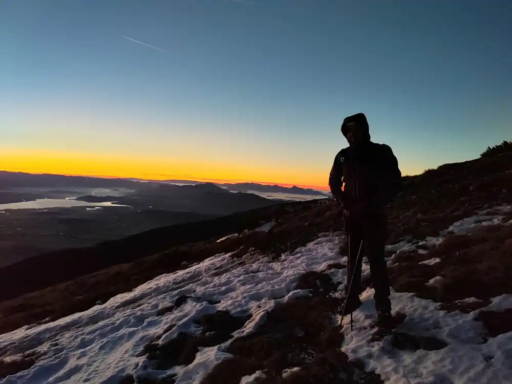 Na samotný vrchol sme dorazili v dokonalom momente. Obloha sa začala farbiť do sýtej oranžovej a jemnej ružovej. Západ slnka na Baranci má v sebe zvláštnu, priam magnetickú silu.