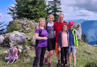 Postavili sme sa do radu, aby sme si mohli urobiť foto na ikonickej skale, tak známej pre Poludnicu a dopriali sme si pred zostupom ešte krátku prestávku. Počas nej sa na Poludnici objavili naši známi z Rakytovice. Musela som ich sklamať svojou informáciou, že Aperol spritz som už nestihla objednať, ale zdalo sa, že im to až tak nevadilo.