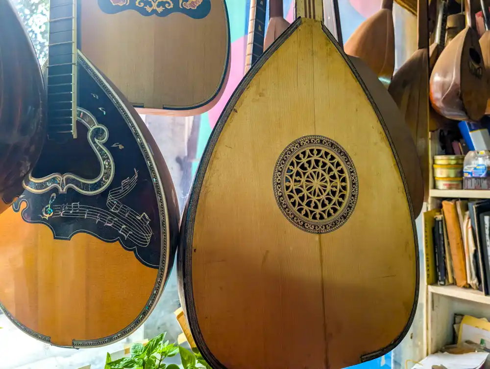 Joaquim zdvihol svoj nástroj a s hrdosťou poznamenal: “Guitarra portuguesa má dvanásť kovových strún, usporiadaných do šiestich párov. Hlava nástroja je zaoblená ako kvapka. Zvuk je ostrejší, kovový, rezonantný. Keď zahráš jeden tón, znie ešte dlho potom — ako echo, ako spomienka. Tento nástroj sa vyvinul priamo pre fado, nenájdeš ho v inej hudobnej tradícii.„