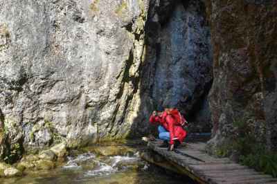 Dolinou nás sprevádza potôčik, ktorý si vyhĺbil cestu pomedzi skaly, vďaka čomu je tu vlhko a mokro. Zrána je to tu dosť klzké a dúfame, že si takto na začiatku nerozbijeme držku.
