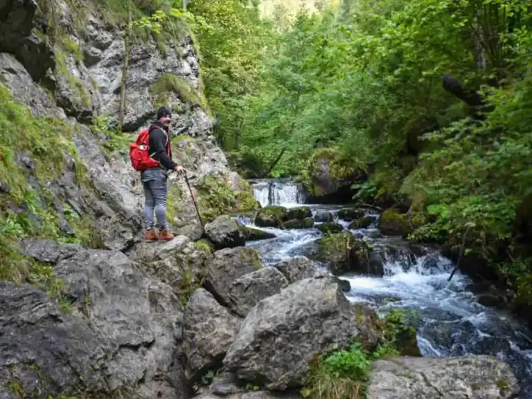 Dolinou nás sprevádza potôčik, ktorý si vyhĺbil cestu pomedzi skaly, vďaka čomu je tu vlhko a mokro. Zrána je to tu dosť klzké a dúfame, že si takto na začiatku nerozbijeme držku.
