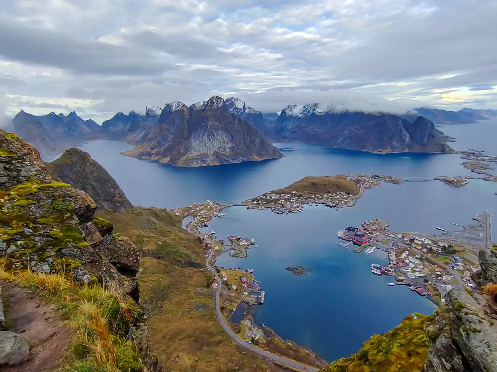 Keď sa dostanete hore, pochopíte, prečo je Reinebringen jedným zo symbolov Lofotov. Pohľad na Reinefjord a Kjerkfjord je dramatický a pokojný zároveň. Hory vyrastajú priamo z mora, voda má farbu, ktorú by vám doma nikto neveril, a ticho má váhu. Nie je to ticho „nič sa nedeje“. Je to ticho, ktoré vás donúti stáť.