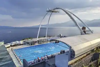 Oblasť Kantrida je všeobecne vnímaná ako športová a centrálna mestská pláž Rijeky. Najmä v okolí olympijských bazénv je veľmi moderná. Je najbližšie k mestských bytovkám a z toho vyplýva všetko ostatné. Zabudnite na súkromie. Ohromná placka bez tieňa s davom ľudí i prístupom psov. Oveľa viac ma zaujala neoficiálna zóna na skalách za futbalovým štadiónom pri prístave. Dôvody boli hneď dva: Viac súkromia a Ožujsko iba 14 kn. 🙂