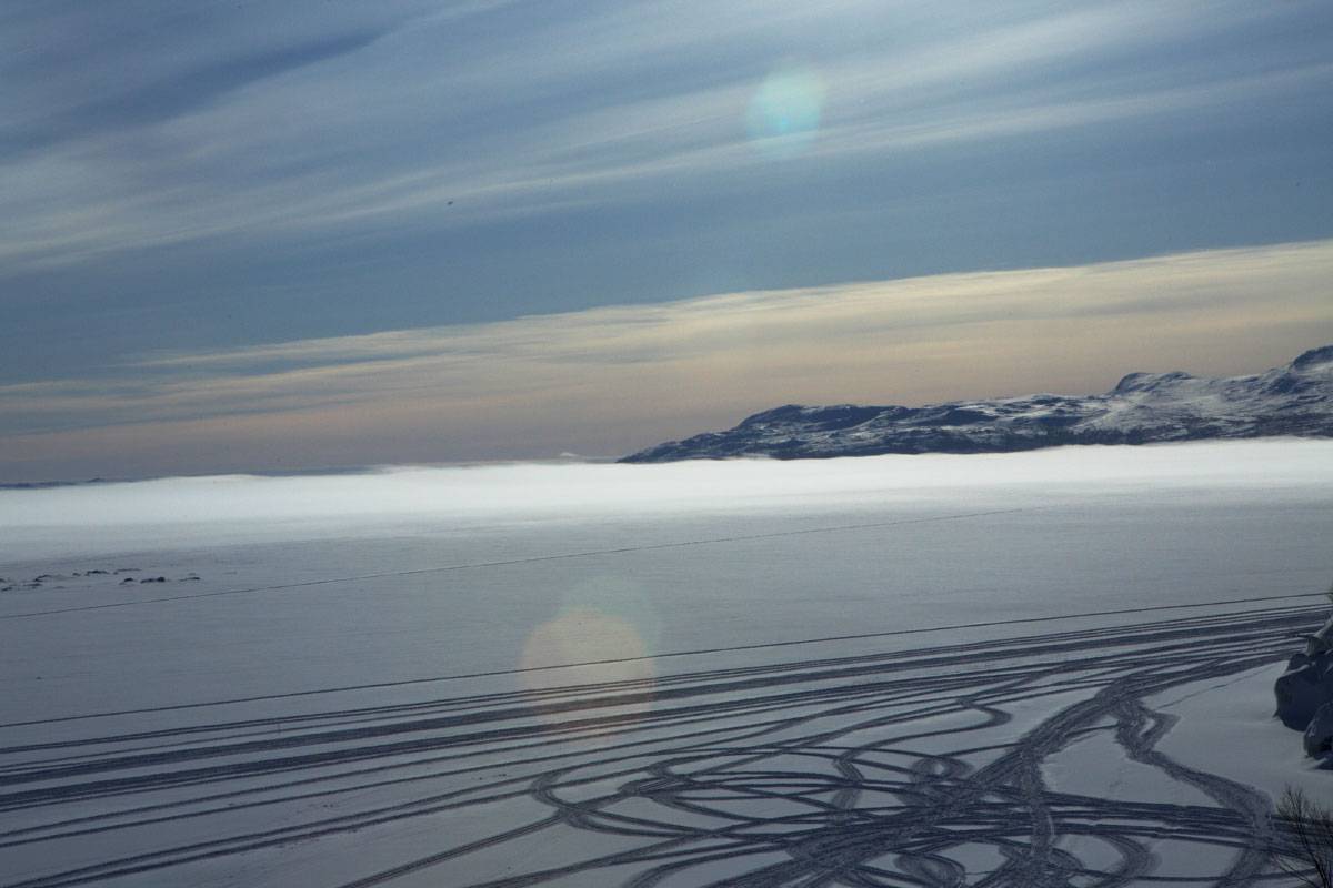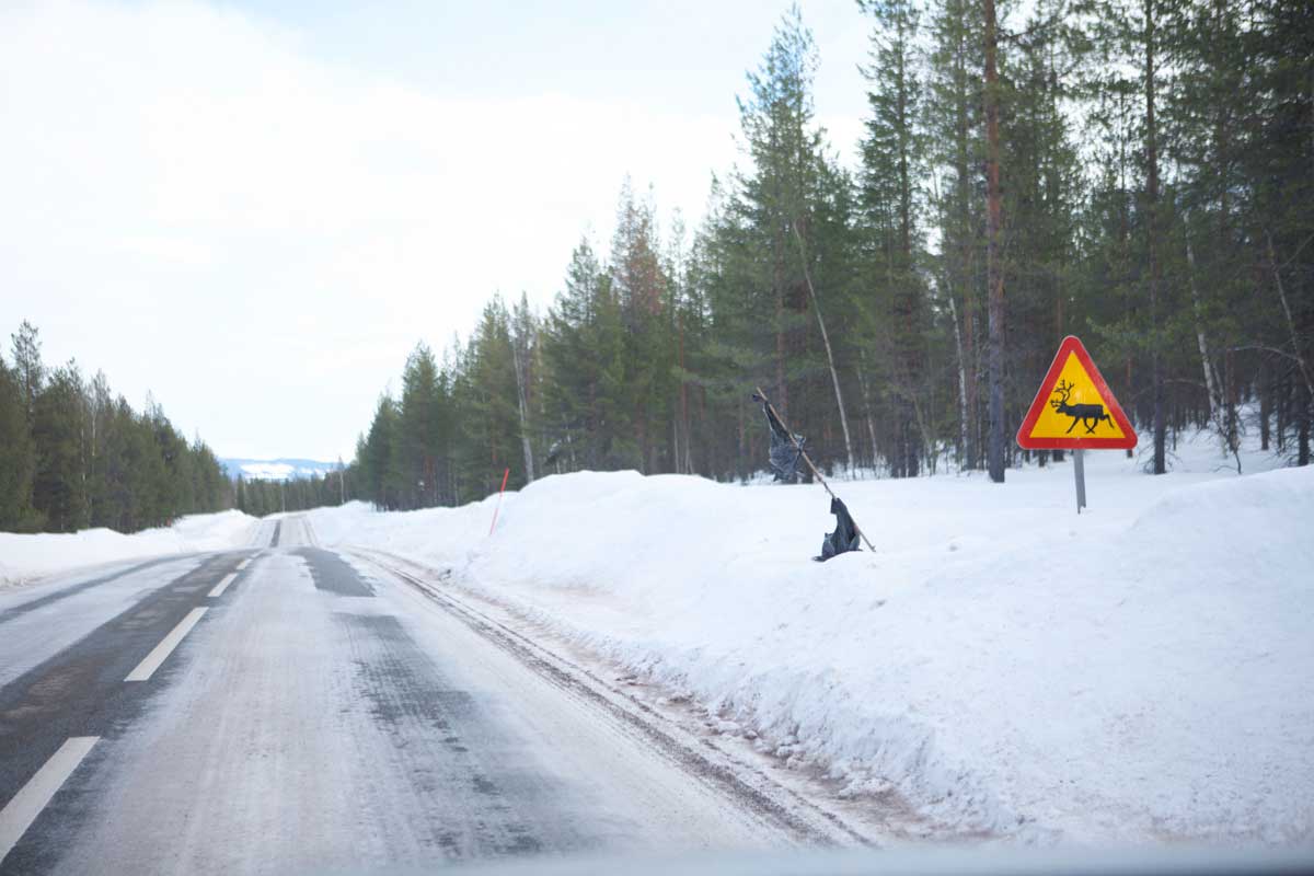 Nikdy by ma nenapadlo, že na tak vzdialených miestach za polárnym kruhom žijú ľudia. A ešte také veľké množstvo. Na okolo boli chaty, na zamrznutom jazera stáli karavany, ktoré mali otvor v podlahe a rybári lovili ryby cez dieru v ľade. Miestni Laponci tu chovajú stáda sobov a žijú z nich. Miesta, kde sa pohybujú stáda, sú označené značkami. Pastieri vešajú igelitové tašky na značky a stĺpy popri ceste, aby plašili soby. Nie vždy to zaberá a počas cesty sme videli množstvo zrazených zvierat.