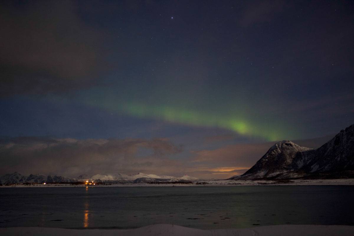 Po obede sme sa vybrali na výlet do Henningsvær-u. Krásne miesto, ktoré dýchalo nielen atmosférou malebného rybárskeho mestečka, ale aj vôňou sušiacich sa tresiek. Boli ich tu tisíce! Počasie sa tu menilo doslova každých pár minút. Vyšlo slnko, o 15 minút snežilo. Cestou naspäť som si všimol stopára. Zastal som mu. Chvíľu sme sa s ním rozprávali a keď na otázku odkiaľ je, odpovedal: ,,Slovakia”, zasmiali sme sa. Najprv bol v šoku, keď sme na neho spustili po slovensky, ale po chvíli sme sa super porozprávali. Peter bol z Oravy a na Lofotách si bol privyrobiť vo fabrike na spracovanie rýb. Práve bol na ceste do kostola, mal to asi 60 km. Bolo to veľmi milé stretnutie. Večer sme šli pozorovať polárnu žiaru. Bolo pod mrakom, ale miestny rybár nám dal super tip. Mali sme šťastie, aktivita nebola silná, ale na chvíľu sa rozostúpili oblaky a na nebi sa roztancovala polárna žiara.