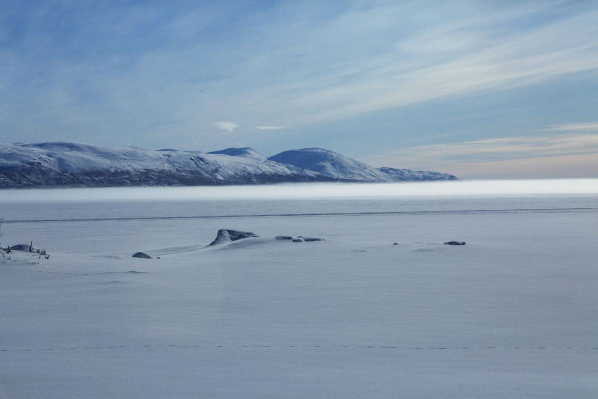 Na ceste Laponskom sa nám naskytli krásne výhľady. Okolo 9 ráno bolo -17 °C a krásne slnečno. Nad zamrznutým jazerom sa vznášala hmla. Ľadová púšť. Pomysleli by si mnohí.