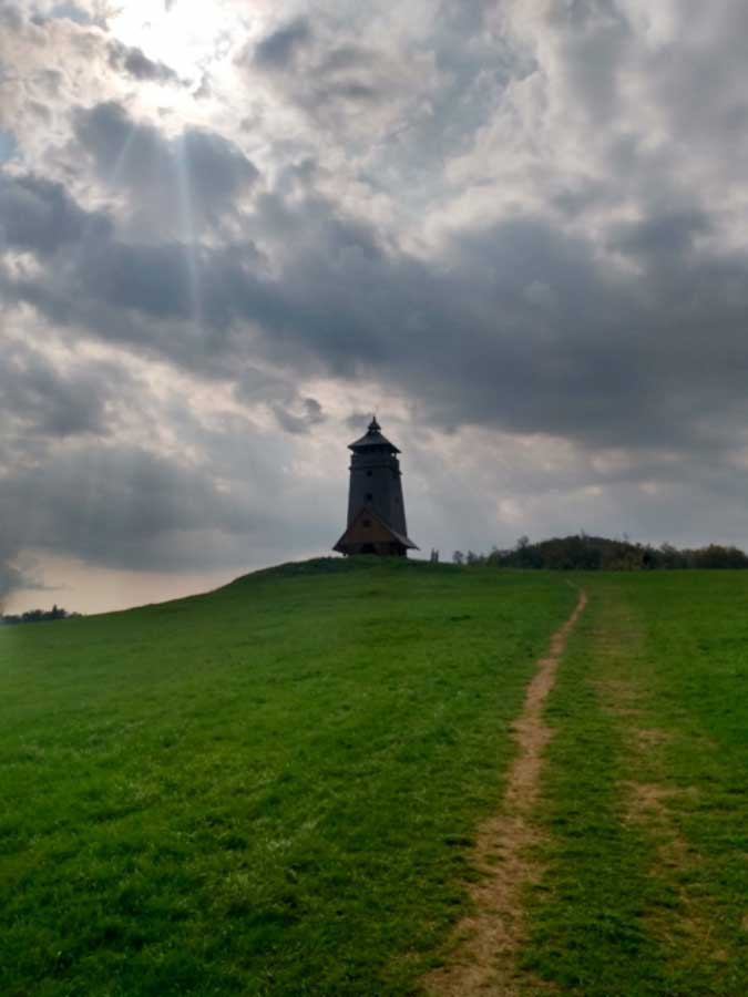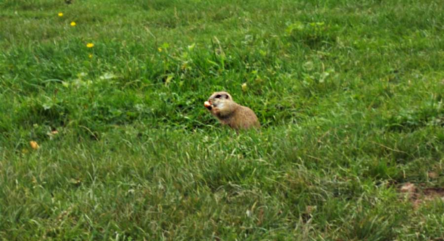 Pokračujeme na lúku plnú sysľov, zaskočí nás však uzavretá cesta II/531, takže nás čaká nekonečne dlhá obchádzka cez Brezno. Všetko zlé je ale na niečo dobré. Dobré v tomto prípade predstavujú buchty od Falťanov, ktoré predávajú vedľa salašu Zbojská. Hrdia sa titulom „Endemit medzi buchtami“ a musíme potvrdiť, že s výnimkou slivkovo-škvarkového onô zo salašu Krajinka sa im ťažko niečo vyrovná. Na protiľahlom kopci je pekná rozhľadňa so zvonicou, kde si môžete zazvoniť. My sme si veru že zazvonili.