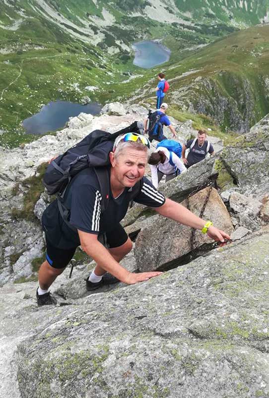 Najprv to nebolí. Iba stúpate. Potom stúpate strmšie a strmšie, až nakoniec leziete. „Kde sú už tie reťaze?“ pýtam sa sám seba, zavesený v skale. V hlave sa mi stále marí, že mám mať nejaké tri pevné body. A nemám sa pozerať dole. Konečne prvá reťaz. Bravúrne ju zdolávam v tempe unaveného mroža. Ďalšia je horšia a horšia a horšia. Začínam hľadať dobrú výhovorku, prečo sa obrátiť naspäť. Ale idú všetci. Predsa to nevzdám. Viac vôľou ako rozumom sa mi podarí dostať až na vrchol. To snáď nie. Oproti mne ide nejaký Ostravák so psom: „Je zvyklý“, neverím vlastným ušiam. Posledný úsek. Údajne najťažší. Načo mi to hovorili.