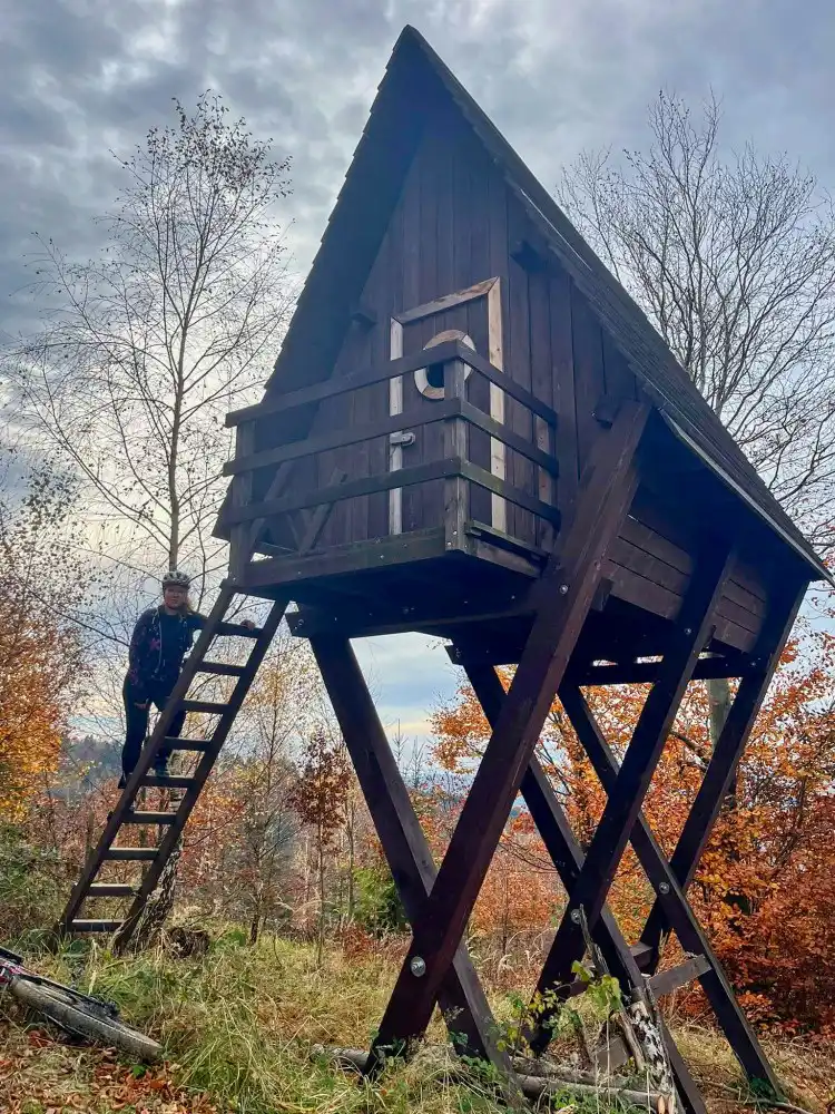 Ale presne o tom to je. A potom sa to zlomí. Les sa otvorí a my stojíme pri rozhľadni. Bez veľkých fanfár, bez davov. Len vietor, ticho a výhľad.